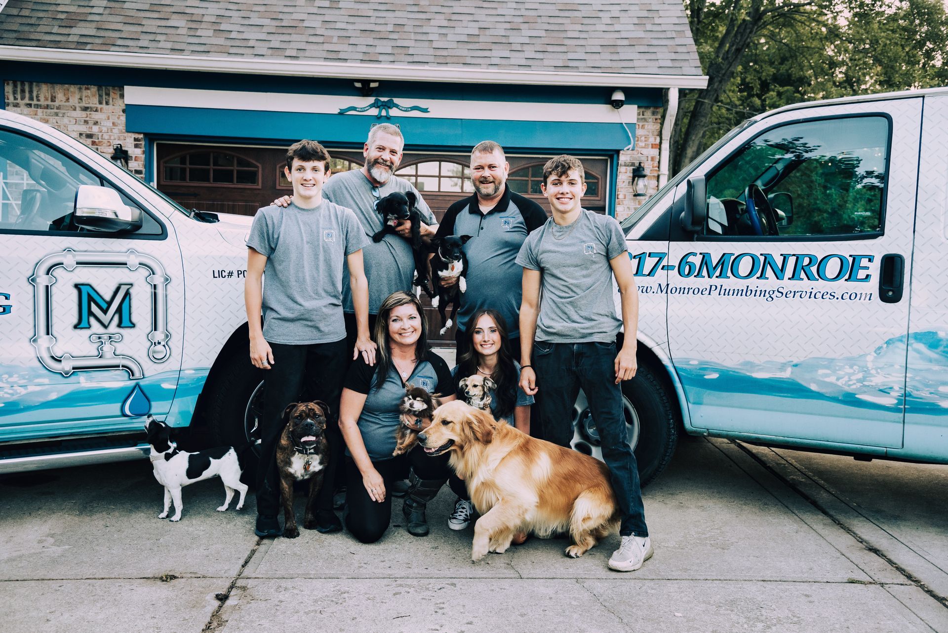 In life and in business it takes the help, love, & support of your family. From the help of the kiddos Cogan, Hayley, & Zac (Left to Right) to the hard work of the wife, Heather, answering phones & managing the office, to the furbabies, to give that lick on the cheek when you need it. Together we strive every day to make the name MONROE the name you know, trust, & count on!!