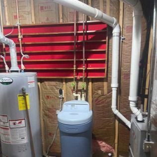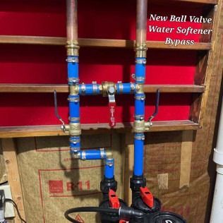 Replacement of old water softener & old gate valve water softener bypass with new water softener & ball valve water softener bypass. Call Monroe Plumbing at